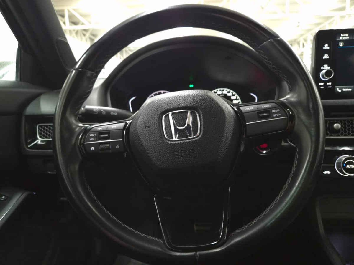 Honda Civic 2022 4p Sport L4/1.5/T Aut. Tipo de precio: Negociable Transmisión: Automática Dirección: Asistida Vestidura: Piel (Cuero) Combustible o energía: Gasolina Premium Segmento: Sedán Color exterior: Negro Color interior: Negro Con aire acondicionado automático Tracción: Delantera Puertas: 4 Pasajeros: 5 Velocidades: 5 Cilindros: 4 Válvulas: 4 Potencia en HP: 176 Torque máximo libras/pie: 176 Capacidad del tanque (l): 47 Consumo en ciudad (Km/l): 10 Consumo en carretera (Km/l): 16 Consumo en combinado (Km/l): 13 Diámetro de rines (pulgadas): 18 Largo del vehículo (mm): 4,673 Alto del vehículo (mm): 1,415 Peso (Kg): 1,366 EQUIPAMIENTO: - Audio: bocinas, controles remotos del equipo de audio, puerto usb. - Confort: aire acondicionado, altura del volante ajustable, apertura de cajuela y tapa combustible, apertura remota de cajuela, botón de arranque del vehículo, control automático de velocidad, desempañador trasero, espejo de vanidad, profundidad del volante ajustable, sensor de estacionamiento, volante de posiciones. - Eléctrico: asiento conductor, computadora de viaje, elevadores de cristal, encendido remoto. - Extras: quemacocos, rines de aluminio y/o aleación. - Gadgets: bluetooth. - Seguridad: bolsa de aire conductor, bolsa de aire laterales, bolsas de aire cortina, cinturones de seguridad delanteros, cinturones de seguridad traseros, control de estabilidad, control de tracción, frenos abs, frenos de disco traseros, sensor para cambio de carril. La imagen de la unidad es solamente ilustrativa y puede variar de acuerdo al equipamiento por la línea del vehículo. Precio de lista es igual de contado o financiado expresado en moneda nacional. Cotización válida en solo esta versión. Sujeto a aprobación de crédito. Para más información de crédito u otra alternativa consultar al ejecutivo de ventas. Este vehículo cumple con los lineamientos en materia de control de emisiones contaminantes, de protección al medio ambiente, de seguridad para los consumidores, de condiciones físico-mecánicas y de registro vehicular que autoricen la circulación del mismo, conforme lo disponen las leyes y demás ordenamientos, tanto locales como federales.