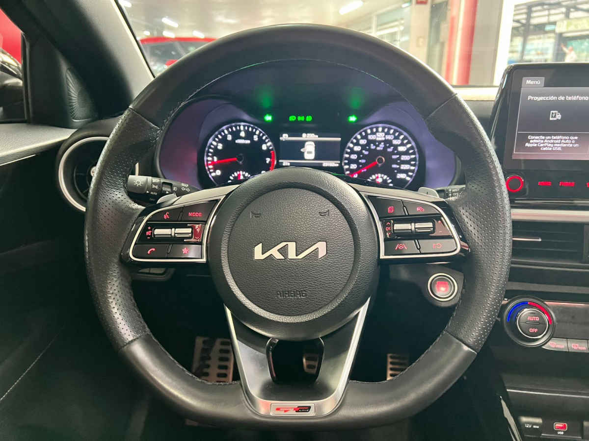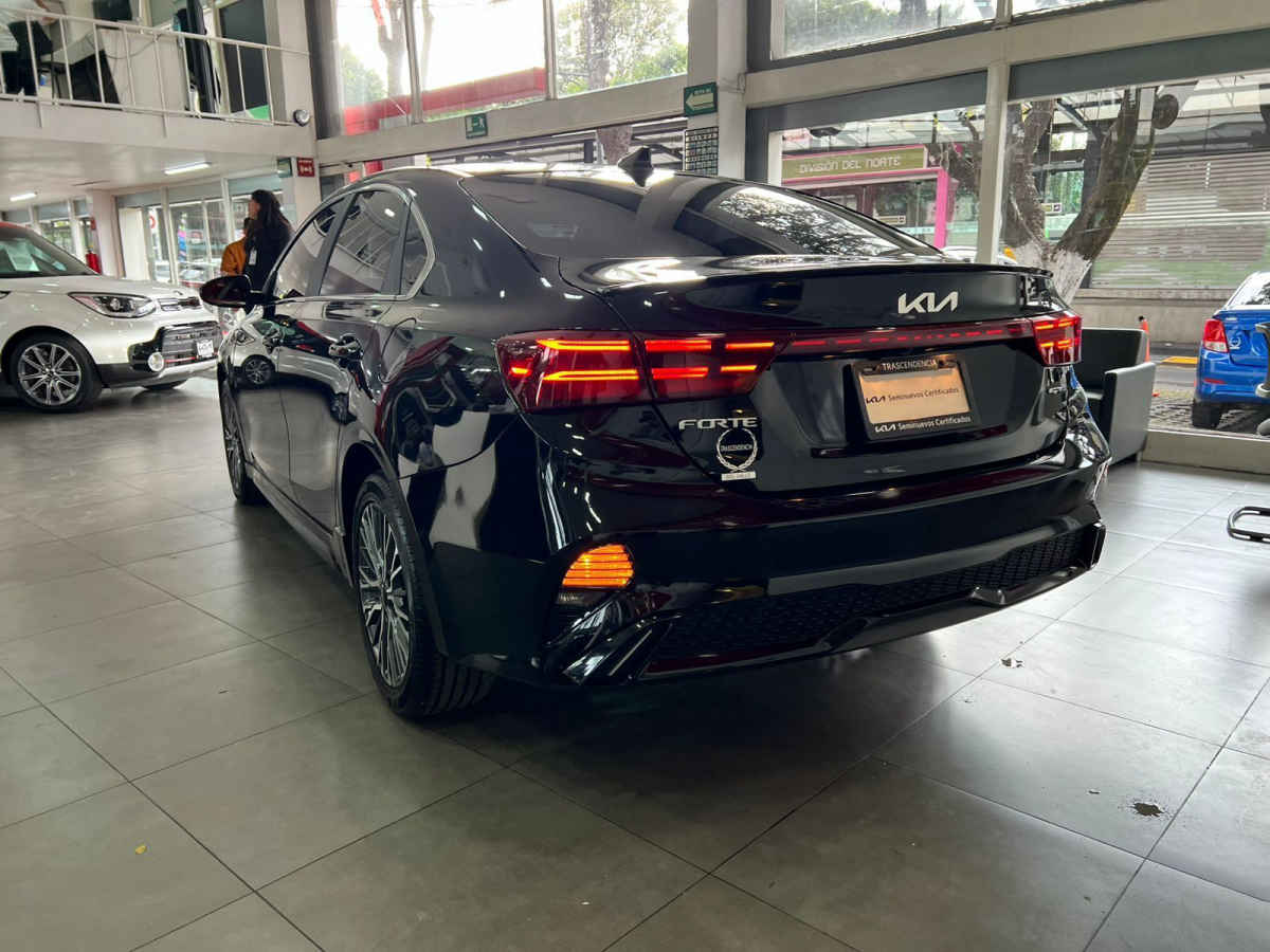 Kia FORTE SEDAN 2024 4p GT Line L4/2.0 Auto. Tipo de precio: Negociable Transmisión: Automática Dirección: Asistida Vestidura: Piel (Cuero) Combustible o energía: Gasolina Segmento: Sedán Color exterior: Negro Color interior: Negro Con aire acondicionado automático Tracción: Delantera Puertas: 4 Pasajeros: 5 Velocidades: Variable Cilindros: 4 Potencia en HP: 147 Torque máximo libras/pie: 132 Capacidad del tanque (l): 50 Consumo en ciudad (Km/l): 15.8 Consumo en carretera (Km/l): 23.5 Consumo en combinado (Km/l): 18.5 Diámetro de rines (pulgadas): 17 Largo del vehículo (mm): 4,640 Ancho del vehículo (mm): 1,800 Alto del vehículo (mm): 1,450 Peso (Kg): 1,260 EQUIPAMIENTO: - Audio: bocinas, controles remotos del equipo de audio, puerto usb. - Confort: aire acondicionado, altura del volante ajustable, botón de arranque del vehículo, control automático de velocidad, espejo de vanidad, espejos laterales retractiles, profundidad del volante ajustable, sensor de estacionamiento, volante multifunciones. - Eléctrico: asiento conductor, cierre centralizado, computadora de viaje, elevadores de cristal, espejos laterales. - Extras: quemacocos, rines de aluminio y/o aleación, spoilers. - Gadgets: bluetooth. - Seguridad: bolsa de aire conductor, bolsa de aire laterales, bolsas de aire cortina, cinturones de seguridad delanteros, cinturones de seguridad traseros, control de estabilidad, control de tracción, encendido diurno automático, faros de niebla, frenos abs, frenos de disco traseros, sensor para cambio de carril, sistema de asistencia de frenado.