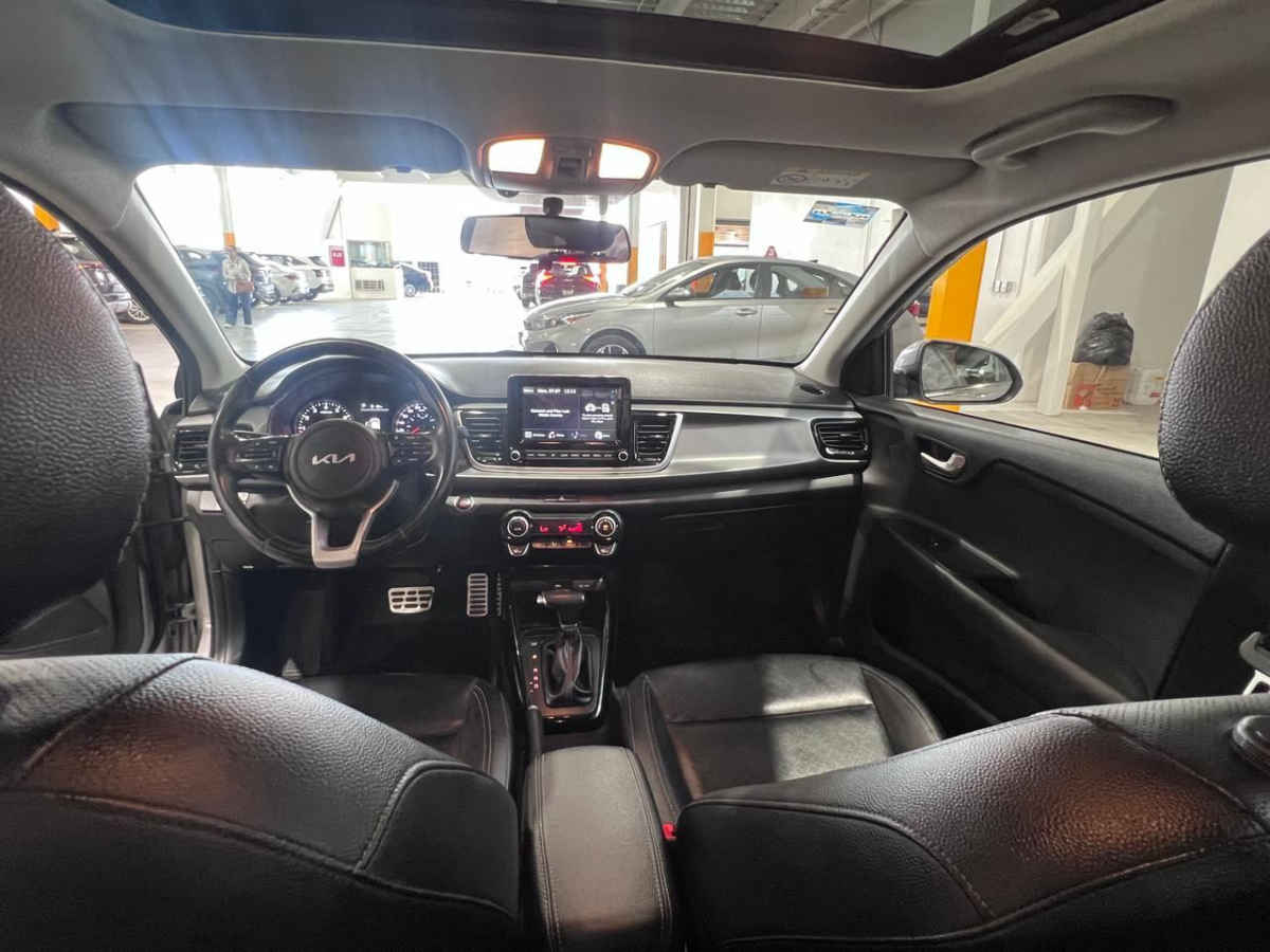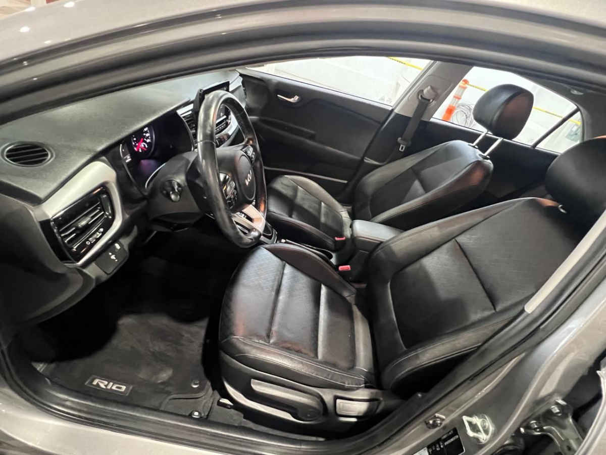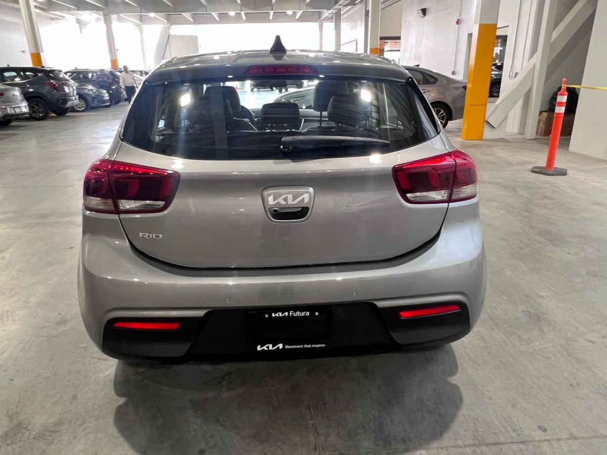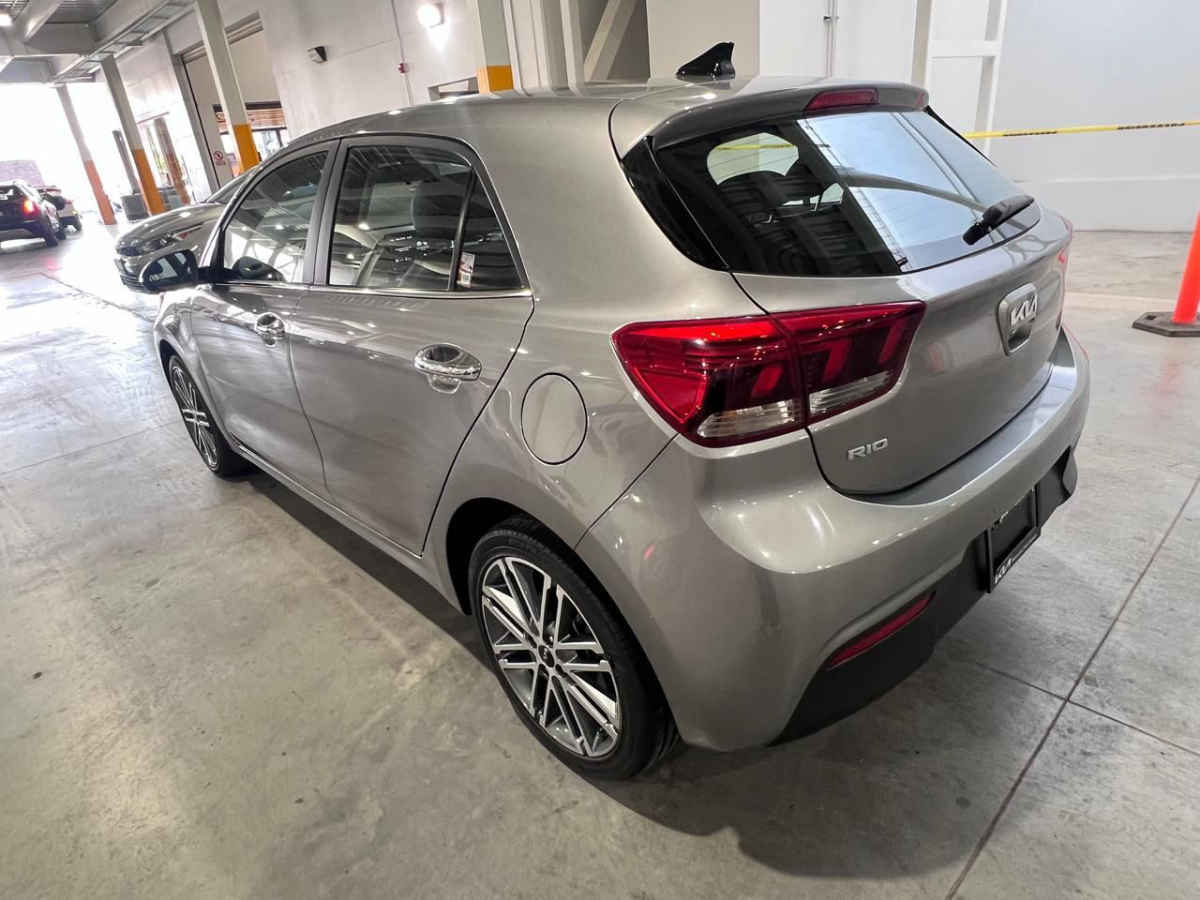 Kia KIA RIO HB 2022 5p EX L4/1.6 Pack Aut. Tipo de precio: Fijo Transmisión: Automática Dirección: Asistida Combustible o energía: Gasolina Segmento: Hatchback 5p Condición: Usado Color exterior: Plata Color interior: Negro Con aire acondicionado automático Tracción: Delantera Puertas: 5 Pasajeros: 5 Velocidades: 6 Cilindros: 4 Válvulas: 4 Potencia en HP: 121 Torque máximo libras/pie: 111 Capacidad del tanque (l): 45 Consumo en combinado (Km/l): 17.8 Diámetro de rines (pulgadas): 17 Largo del vehículo (mm): 4065 Ancho del vehículo (mm): 1725 Alto del vehículo (mm): 1460 Peso (Kg): 1131 EQUIPAMIENTO: - Audio: bocinas, controles remotos del equipo de audio, puerto usb. - Confort: aire acondicionado, altura del volante ajustable, apertura de cajuela y tapa combustible, apertura remota de cajuela, botón de arranque del vehículo, control automático de velocidad, desempañador trasero, espejo de vanidad, espejos laterales retractiles, profundidad del volante ajustable, sensor de estacionamiento, volante de posiciones. - Eléctrico: asiento conductor, computadora de viaje, elevadores de cristal. - Extras: quemacocos, rines de aluminio y/o aleación, spoilers. - Gadgets: bluetooth. - Seguridad: bolsa de aire conductor, bolsa de aire laterales, bolsas de aire cortina, cinturones de seguridad delanteros, cinturones de seguridad traseros, control de estabilidad, control de tracción, faros de niebla, frenos abs, frenos de disco traseros.