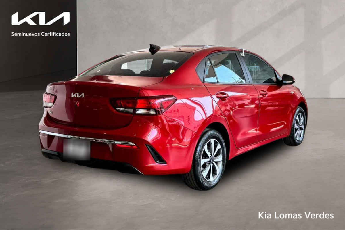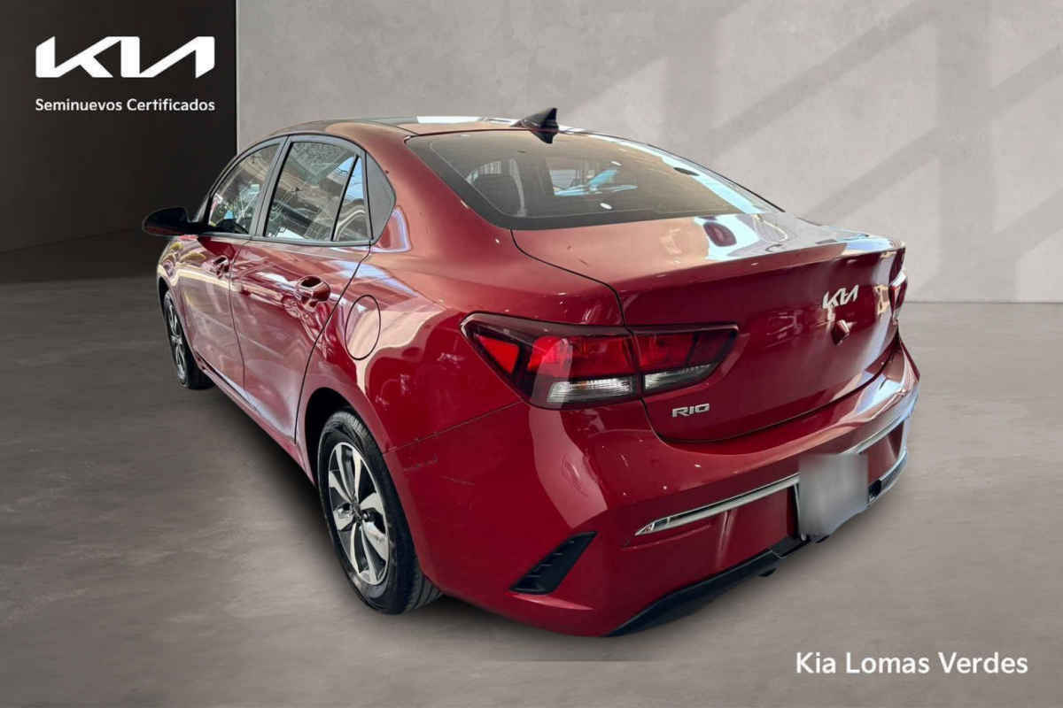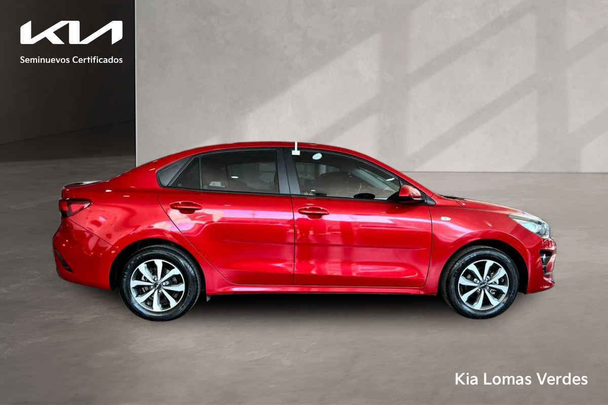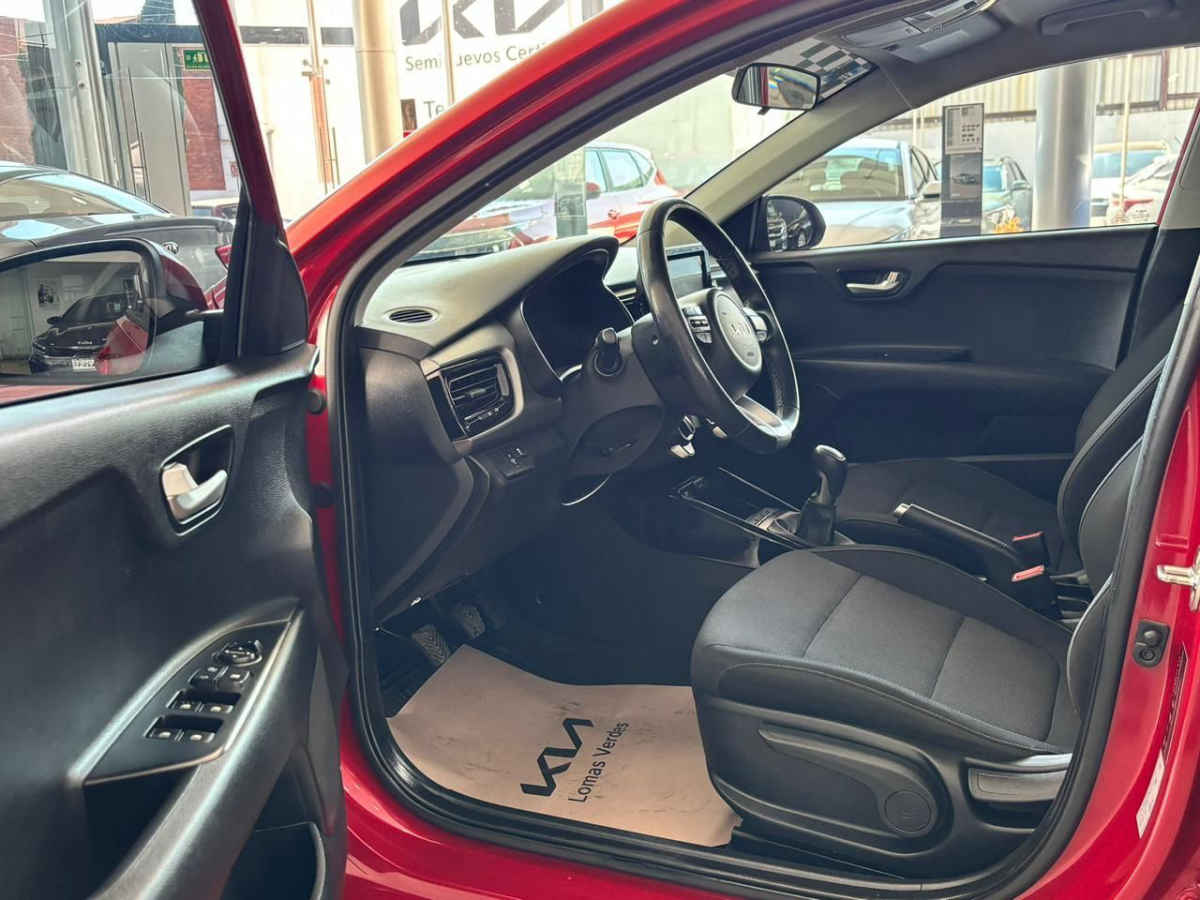 Kia KIA RIO SEDAN 2023 4p LX L4/1.6 Man. Tipo de precio: Fijo Transmisión: Manual Dirección: Asistida Vestidura: Tela Combustible o energía: Gasolina Segmento: Sedán Color exterior: Rojo Color interior: Negro Con aire acondicionado Tracción: Delantera Puertas: 4 Pasajeros: 5 Velocidades: 6 Cilindros: 4 Válvulas: 4 Potencia en HP: 121 Torque máximo libras/pie: 111 Capacidad del tanque (l): 45 Consumo en ciudad (Km/l): 17 Consumo en carretera (Km/l): 15 Consumo en combinado (Km/l): 18.2 Diámetro de rines (pulgadas): 15 Largo del vehículo (mm): 4,385 Ancho del vehículo (mm): 1,725 Alto del vehículo (mm): 1,460 Peso (Kg): 1,103 EQUIPAMIENTO: - Audio: bocinas, controles remotos del equipo de audio, puerto usb. - Confort: aire acondicionado, altura del volante ajustable, apertura de cajuela y tapa combustible, apertura remota de cajuela, desempañador trasero, espejo de vanidad, sensor de estacionamiento, volante de posiciones. - Documentos: acepto vehículos a cuenta. - Eléctrico: asiento conductor, computadora de viaje, elevadores de cristal. - Extras: rines de aluminio y/o aleación. - Gadgets: bluetooth. - Seguridad: bolsa de aire conductor, bolsa de aire laterales, bolsas de aire cortina, cinturones de seguridad delanteros, cinturones de seguridad traseros, control de estabilidad, control de tracción, frenos abs, frenos de disco traseros.