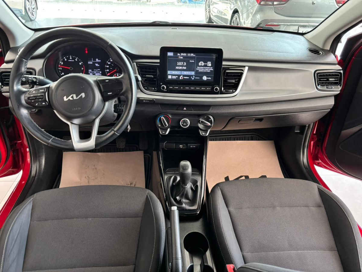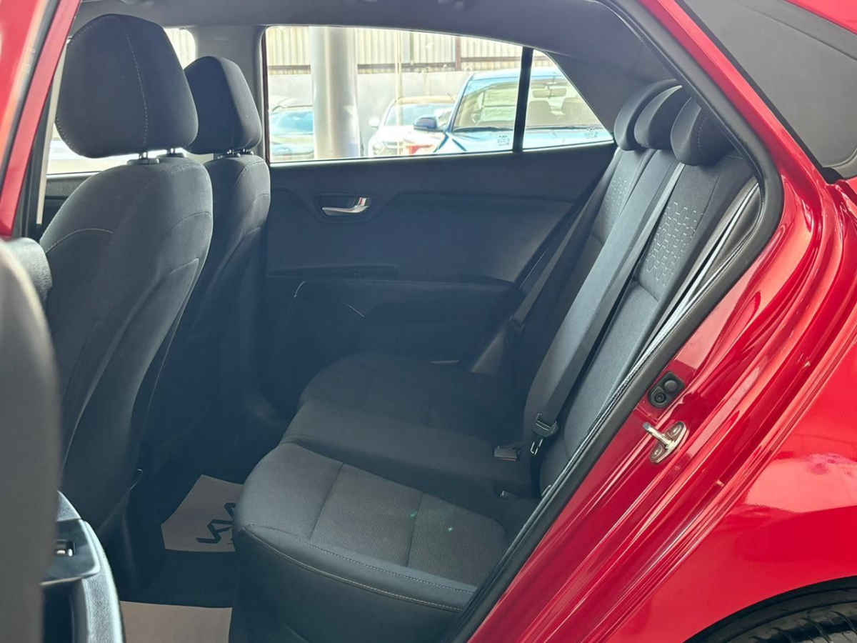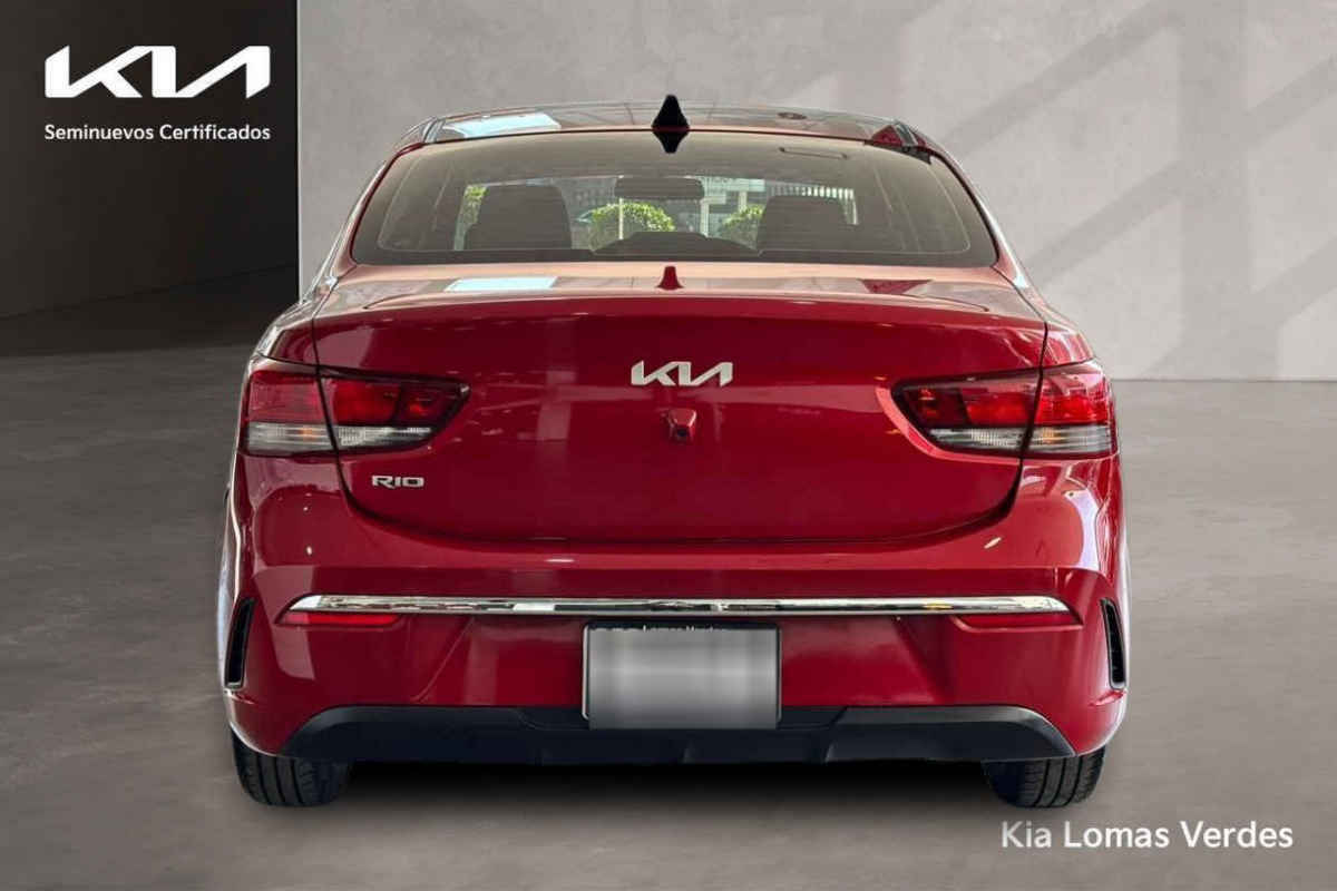 Kia KIA RIO SEDAN 2023 4p LX L4/1.6 Man. Tipo de precio: Fijo Transmisión: Manual Dirección: Asistida Vestidura: Tela Combustible o energía: Gasolina Segmento: Sedán Color exterior: Rojo Color interior: Negro Con aire acondicionado Tracción: Delantera Puertas: 4 Pasajeros: 5 Velocidades: 6 Cilindros: 4 Válvulas: 4 Potencia en HP: 121 Torque máximo libras/pie: 111 Capacidad del tanque (l): 45 Consumo en ciudad (Km/l): 17 Consumo en carretera (Km/l): 15 Consumo en combinado (Km/l): 18.2 Diámetro de rines (pulgadas): 15 Largo del vehículo (mm): 4,385 Ancho del vehículo (mm): 1,725 Alto del vehículo (mm): 1,460 Peso (Kg): 1,103 EQUIPAMIENTO: - Audio: bocinas, controles remotos del equipo de audio, puerto usb. - Confort: aire acondicionado, altura del volante ajustable, apertura de cajuela y tapa combustible, apertura remota de cajuela, desempañador trasero, espejo de vanidad, sensor de estacionamiento, volante de posiciones. - Documentos: acepto vehículos a cuenta. - Eléctrico: asiento conductor, computadora de viaje, elevadores de cristal. - Extras: rines de aluminio y/o aleación. - Gadgets: bluetooth. - Seguridad: bolsa de aire conductor, bolsa de aire laterales, bolsas de aire cortina, cinturones de seguridad delanteros, cinturones de seguridad traseros, control de estabilidad, control de tracción, frenos abs, frenos de disco traseros.